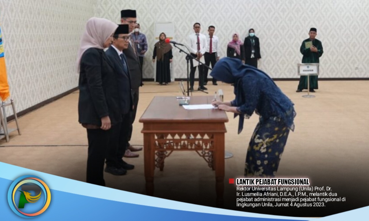 psibali.or.id/ – Rektor Universitas Lampung (Unila) Prof. Dr. Ir. Lusmeilia Afriani, D.E.A., I.P.M., melantik dua pejabat administrasi menjadi pejabat fungsional di lingkungan Unila, Jumat (04/08/2023).
