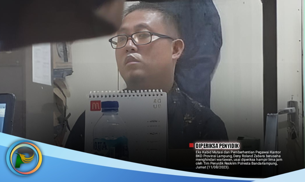 psibali.or.id/ – Eks Kabid Mutasi dan Pemberhentian Pegawai Kantor BKD Provinsi Lampung, Deny Roland Zabara berusaha menghindari wartawan, usai diperiksa hampir lima jam oleh Tim Penyidik Reskrim Polresta Bandarlampung, Jumat (11/08/2023).